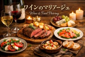 マリアージュは難しい専門用語に見えても、実際は料理の味・香り・温度にワインをどう合わせるかを考えることです。まずは「似たものを寄せる」「足りないものを補う」の2方向で考えるとつかみやすいですよ。